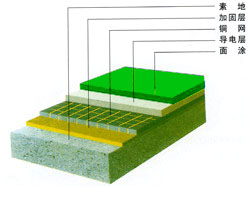 5、面 涂: 環(huán)氧樹(shù)脂薄涂防靜電面涂層(用滾筒滾涂于導(dǎo)電層之上)