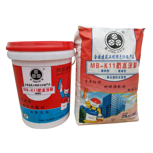 MB-K11柔韌型防水砂漿是一種雙組分、丙烯酸類高聚物改性的水泥基防水材料,由水泥、級配骨料和精選助劑的粉料及液態(tài)高聚物添加劑等組成。粉料與添加劑混合后,發(fā)生化學反應,形成一層永久性的堅韌的彈性防水膜,該膜對混凝土和灰漿有良好的粘附性,能與之形成緊密牢固的永久性結合,阻止了水的滲透。
