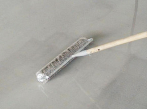 1、底涂:將底油加水以1:4稀釋后,均勻涂刷在基面上。1Kg底油涂布面積為5平方米。用漆刷或滾筒將自流平底涂劑涂于處理過的混凝土基面上,涂刷二層,在舊基層上需再增1道底漆。第一層干燥后方可涂第二層(間隔時(shí)間30分鐘左右)。底涂劑用量約為0.18kg/m2,每桶可施工約為110m2。底涂劑干燥后進(jìn)行自流平施工。 2、漿料拌和:先秤量7公斤的水量置于拌和機(jī)內(nèi),邊攪拌邊加入環(huán)氧樹脂自流平,直到均勻不見顆粒狀,且流動(dòng)性佳的情況,再繼續(xù)攪拌3-4分鐘,使?jié){料均勻,靜止10分鐘左右方可使用。如一次拌和二包,則先加14公斤的水,但只能先加一包,攪和至均勻不見顆粒,再加第二包。 3、刮涂面層:待底油半干后即可澆注漿料,并以帶齒推刀或刮板加助展開,并控制薄層厚度,再以消泡滾筒處理即成高平整地坪。將攪拌均勻自流平砂漿倒于底涂過的基面上,一次涂抹須達(dá)到所需厚度,再用鏝刀或?qū)S谬X針刮刀攤平,再用放氣滾筒放棄,待其自流。表面凝結(jié)后,不用再涂抹。 |